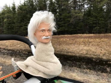 His “stroller” is his gear transport, equipped with the tent he sleeps in, basic camping gear, soothing agents for the blisters and plenty of shoes. His quest is his way of celebrating life and Canada during its 150th year. He has one steady companion: Al, the bobble head.