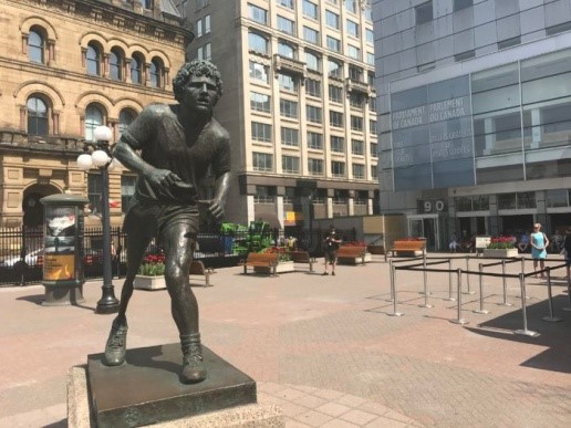 It is poetic, perhaps, that by the time Dave hit the one month mark, he was standing in front of the statue of a young man in Ottawa who had inspired a nation --- Terry Fox.